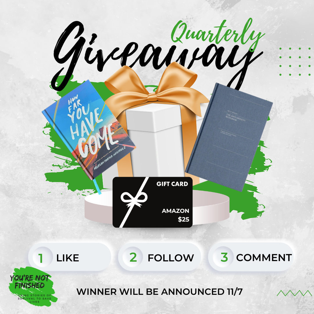 FYI: I’m not sponsored by either of these people or companies (Amazon, Therapy Notebooks, or Morgan Harper Nichols), nor am I partnering with them or any other brand/business for this giveaway, but if you are a brand or business that would like to partner in the future, feel free to contact! These are just some excellent resources that I believe in and are helping me through the journey to better mental health and I am sure they will do the same for you.